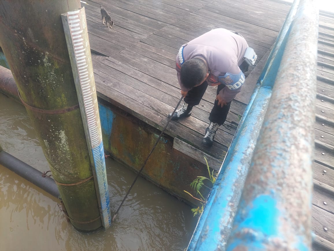 Polres Lamandau – Personil Polsek Bulik melakukan kegiatan rutin pengecekan debit air DAS lamandau di TMA Kelurahan Nanga Bulik, Kamis (21/8/25) pagi