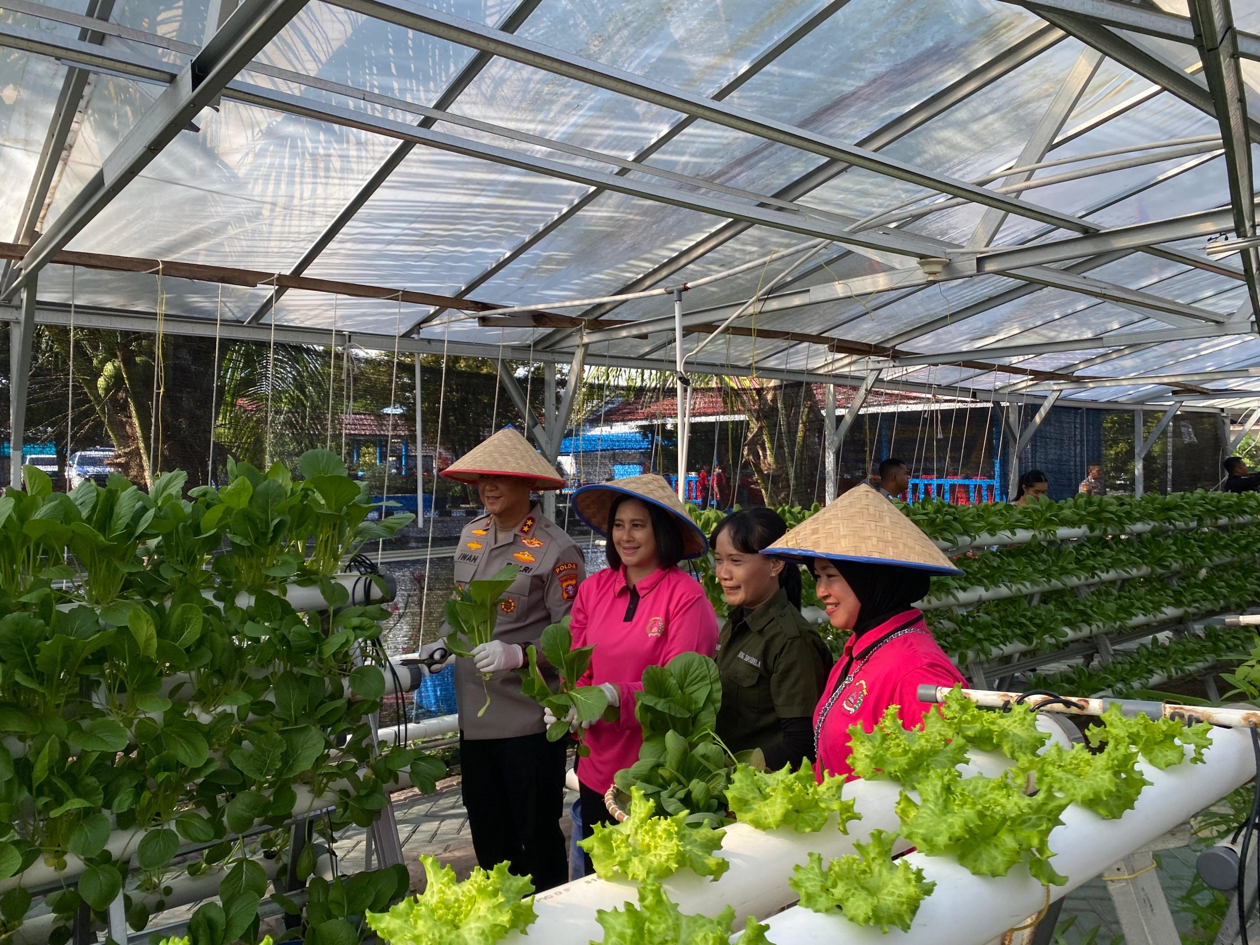 Palangka Raya – Dirsamapta Polda Kalteng Kombes Pol Arie Sandy Z. Sirait, S.I.K., M.Si. bersama Ny. Meigthy Arie Sandy, menghadiri kegiatan panen pekarangan pangan lestari yang berada di Mapolda Kalteng, Pekarangan P2L Ditlantas, Jl. Tjilik Riwut, Km. 1. Selasa (26/8/2025).