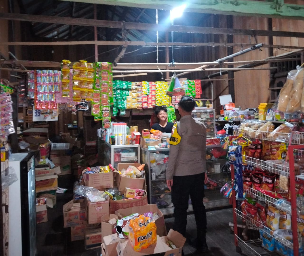 Polres lamandau – Personil piket Polsek Delang Polres Delang melaksanakan Patroli dan sambang kepada pedagang wilayah Polsek Delang, Senin (29/9/25) Malam.