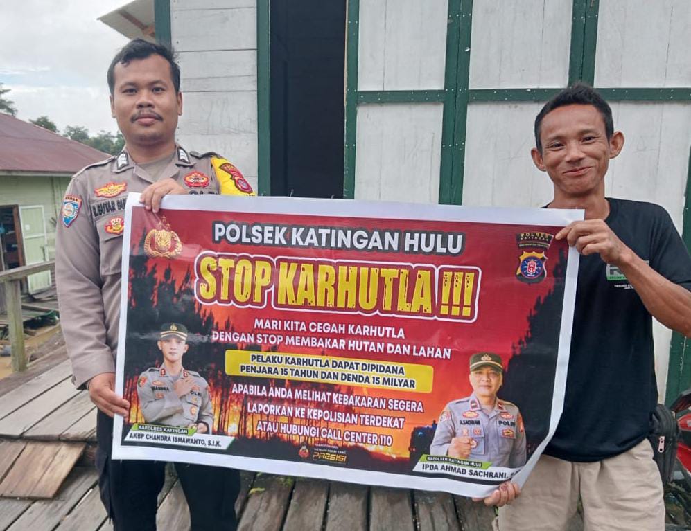 Kapolres Katingan AKBP CHANDRA ISMAWANTO S.I.K melalui Kapolsek IPDA AHMAD SACHRANI, S.H menyampaikan kegiatan ini dilakukan secara rutin dan terus-menerus dengan langsung turun ke semua wilayah baik pada tingkat Desa maupun pada tingkat Kecamatan agar masyarakat mengetahui tentang LARANGAN MEMBAKAR HUTAN DAN LAHAN.