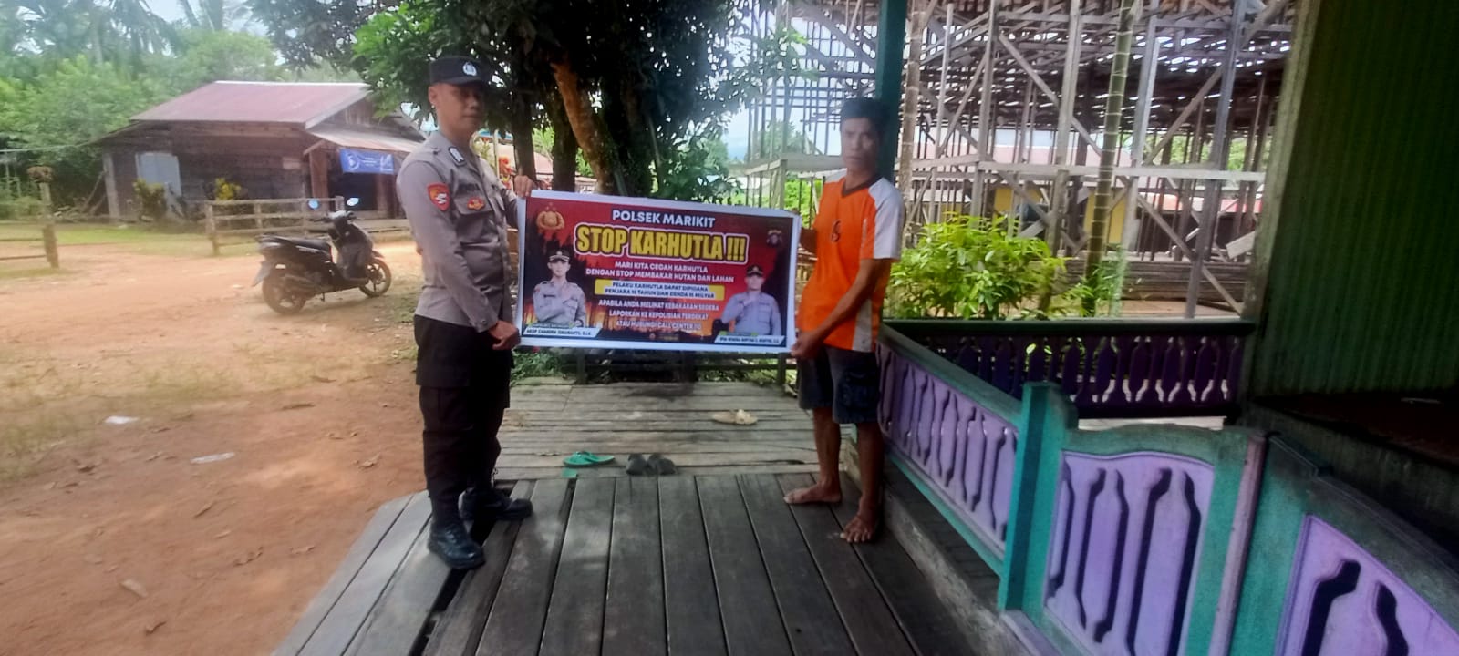 Personil Polsek Marikit Melaksanakan Sosialisasi Tentang Larangan Membakar Hutan Dan Lahan.