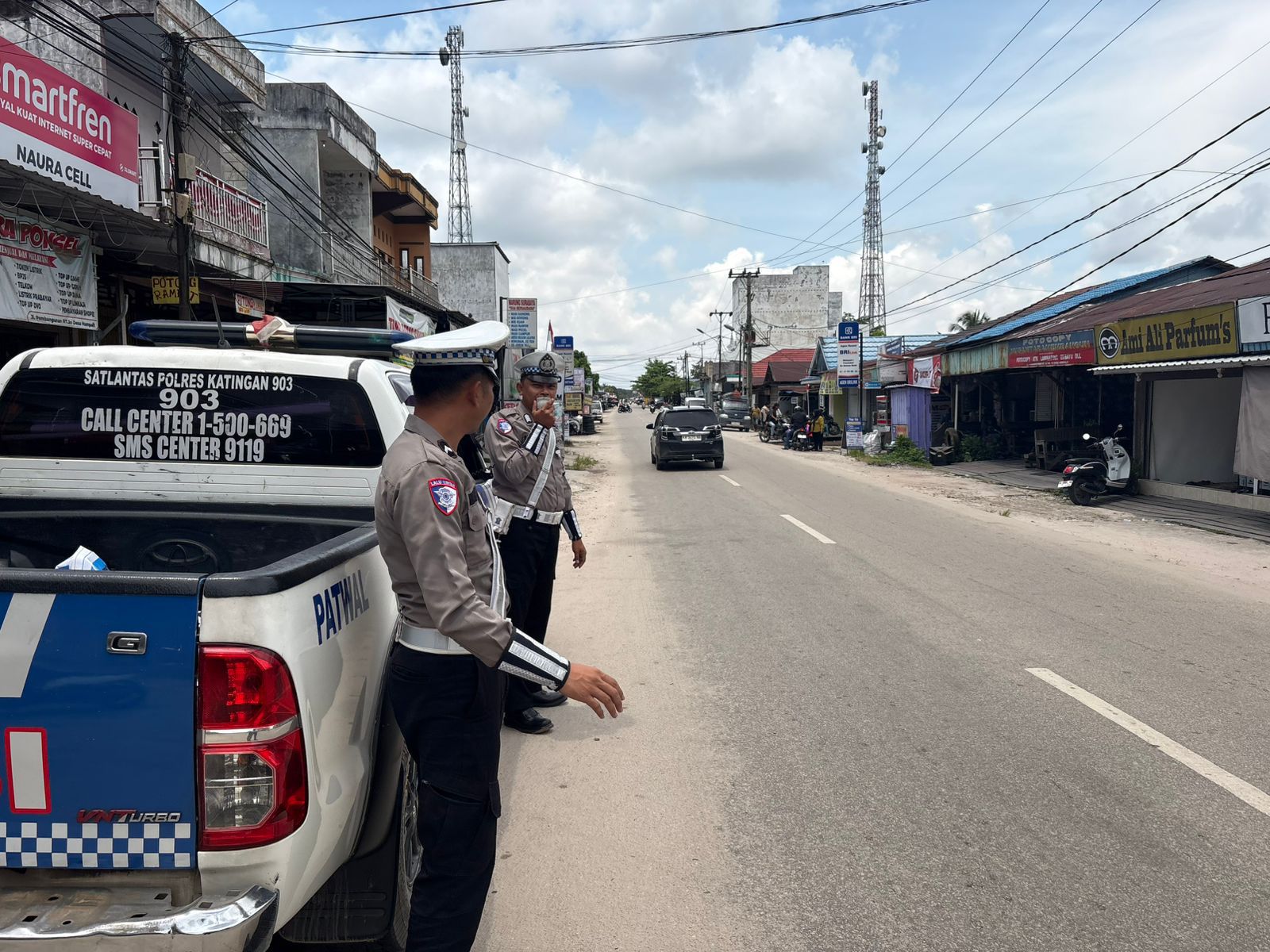 Polres Katingan – Personil Satlantas Polres Katingan Melaksanakan Kegiatan Sosialisasi / Penyuluhan Keliling di Jl.Pembangunan arah desa hampalit Kec. Katingan Hilir, Kab. Katingan.