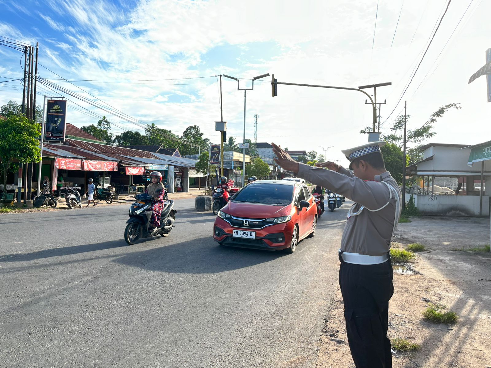 Satuan Lantas Polres lamandau Laksanakan Pengaturan Lalin Pada Pagi hari