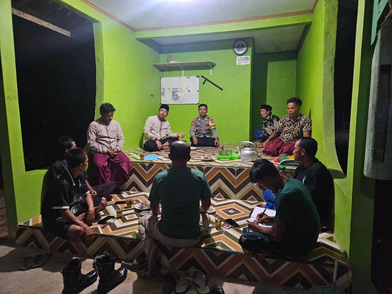 Polres lamandau – Bhabinkamtibmas Bripka Yoga Trapsilo Polsek Sematu Jaya, Menyambangi Piket jaga sat kamling RT. 14 Desa Mekar Mulya, Kec. Sematu Jaya, Kab. Lamandau, Prov. Kalteng yang sedang jaga pos kampling, Kamis (9/10/25) malam.