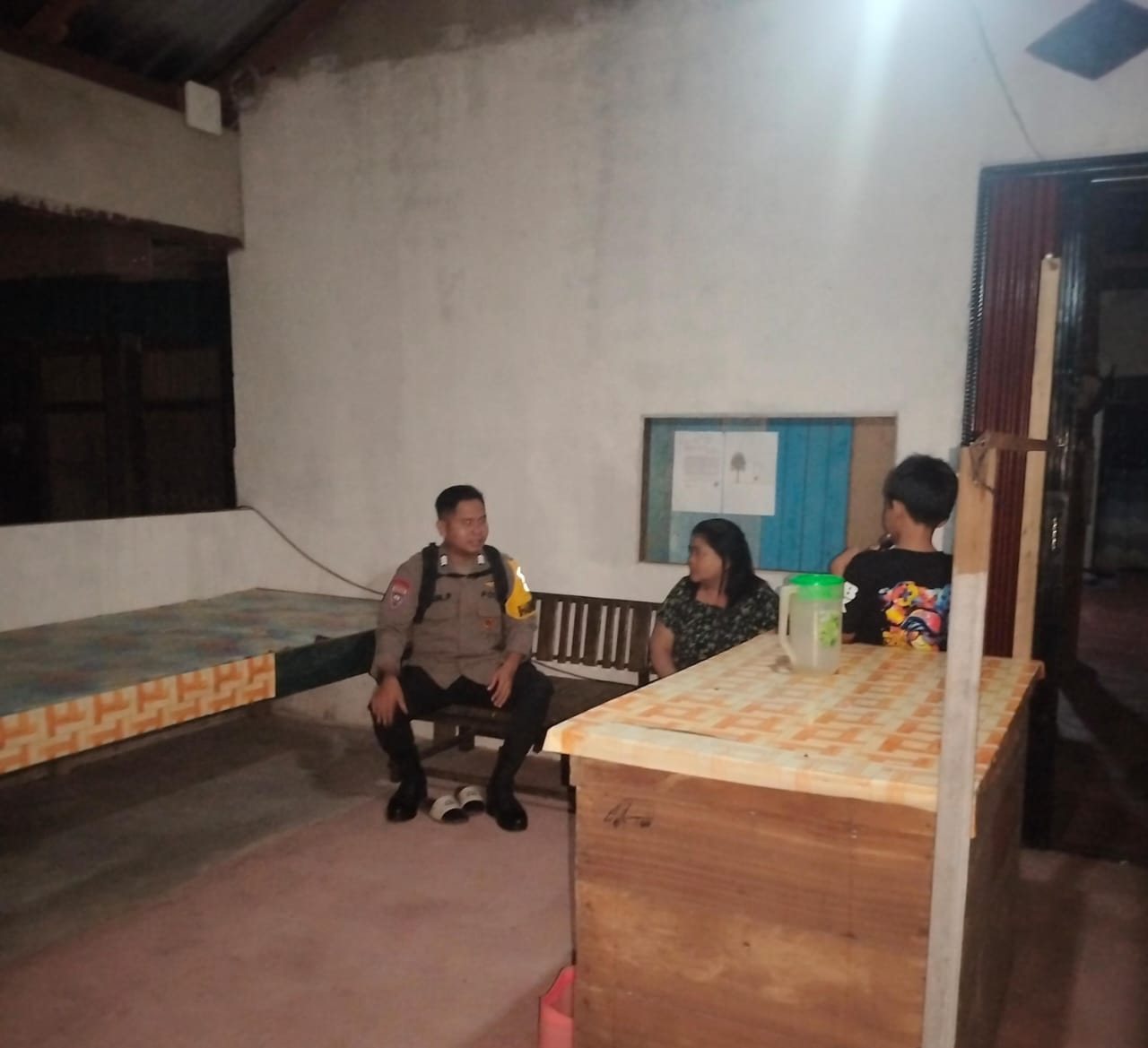 Polres Lamandau – Piket Polsek Delang melakukan kegiatan sambang kerumah-rumah masyarakat di Wilkum Polsek Delang Kecamatan Delang, Jumat (10/10/25) Malam.