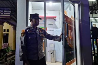 Nanga Bulik – Petugas patroli Polsek Bulik menyambangi Satpam Bank BRI, di Kelurahan Nanga Bulik, Kecamatan Bulik, Senin (13/10/25) Malam.