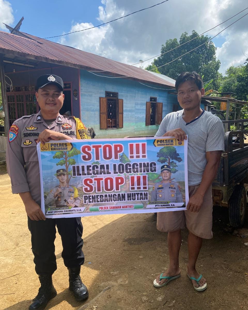 Kapolres Katingan AKBP CHANDRA ISMAWANTO , S.I.K.,melalui Kapolsek Sanaman Mantikei IPTU SUWARDI , S.H menjelaskan kegiatan Bhabinkamtibmas jajaran Polres Katingan dengan cara sosialisasi kepada masyarakat agar mengerti dan memahami tentang larangan dan sangsi bagi pelaku pekerja Ileggal Loging serta mengerti bahwa dampak dan akibat yang di timbulkan akibat Ileggal Loging tersebut.