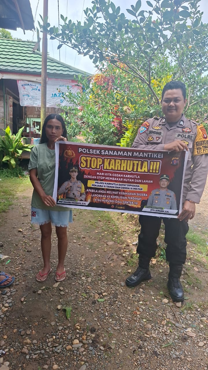 Kapolres Katingan AKBP CHANDRA ISMAWANTO , S. I. K., melalui Kapolsek S. Mantikei IPTU SUWARDI, .S.H., menjelaskan kegiatan Bhabinkamtibmas jajaran Polres Katingan dengan cara sosialisasi kepada masyarakat agar mengerti dan memahami maklumat kapolda kalteng tentang larangan karhutla serta mengerti sanksi dan denda akibat pembakaran tersebut.
