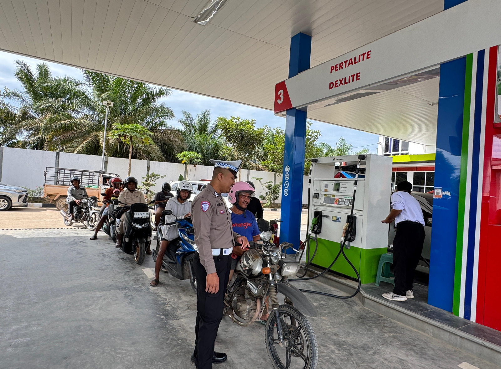 Nanga Bulik – Demi mewujudkan kemanan dan kenyamanan kepada masyarakat yang mengisi BBM di SPBU, Personel Lantas Polres lamandau melaksanakan patroli dan pengaturan arus lalu lintas di SPBU yang ada di Kecamatan Bulik Kabupaten lamandau, Selasa (28/10/25).