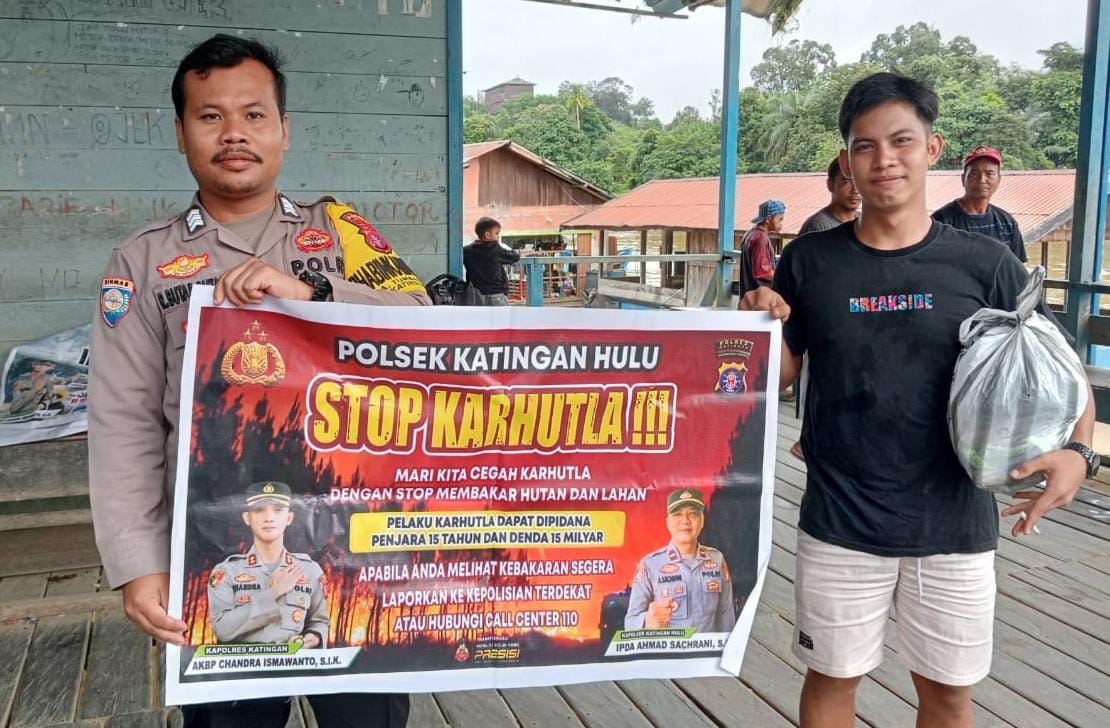 Polres Katingan – Salah satu cara Polsek Katingan Hulu, Polres Katingan, Polda Kalimantan Tengah dalam menangani Dampak KARHUTLA, Bhabinkamtibmas Aulia Rahman polsek Katingan Hulu melaksanakan Sosialisasi STOP!!! KEJAHATAN TERHADAP LINGKUNGAN “DILARANG MEMBAKAR HUTAN DAN LAHAN DI WILKUM POLSEK KATINGAN HULU kepada masyarakat Desa Tumbang Jiga Kec Katingan Hulu, Kab. Katingan kegiatan,Minggu (09/11/2025) pagi.