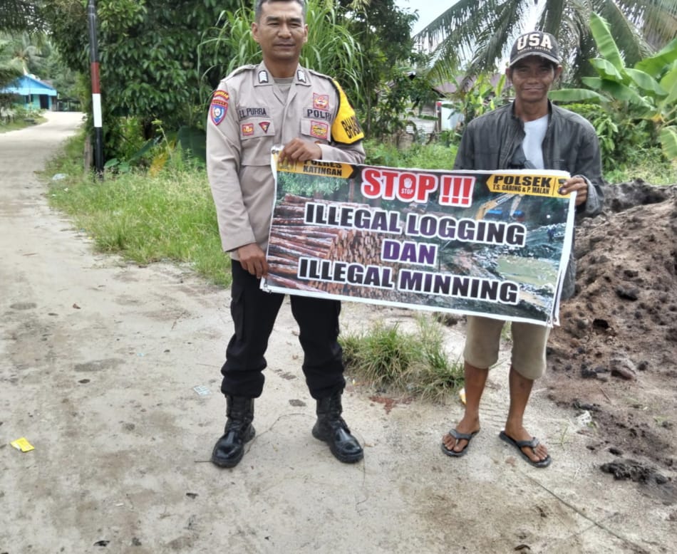 Tribaratanews.kalteng.polri.go.id-Polres Katingan – Salah satu cara Polsek Tws. Garing dan Pulau Malan, Polres Katingan, Polda Kalimantan Tengah, anggota Polsek Tws. Garing dan Pulau Malan melaksanakan Sosialisasi “Stop!!! Kejahatan Terhadap Lingkungan “Berupa Larangan Melakukan Kegiatan Ilegal Logging dan Ilegal Meaning”, Minggu (09/11/2025) Pagi.