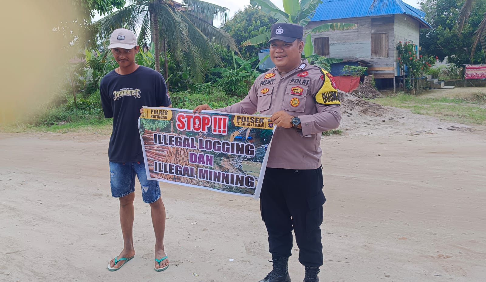 Tribaratanews.kalteng.polri.go.id-Polres Katingan – Salah satu cara Polsek Tws. Garing dan Pulau Malan, Polres Katingan, Polda Kalimantan Tengah, anggota Polsek Tws. Garing dan Pulau Malan melaksanakan Sosialisasi “Stop!!! Kejahatan Terhadap Lingkungan “Berupa Larangan Melakukan Kegiatan Ilegal Logging dan Ilegal Meaning”, Selasa (11/11/2025) Pagi.
