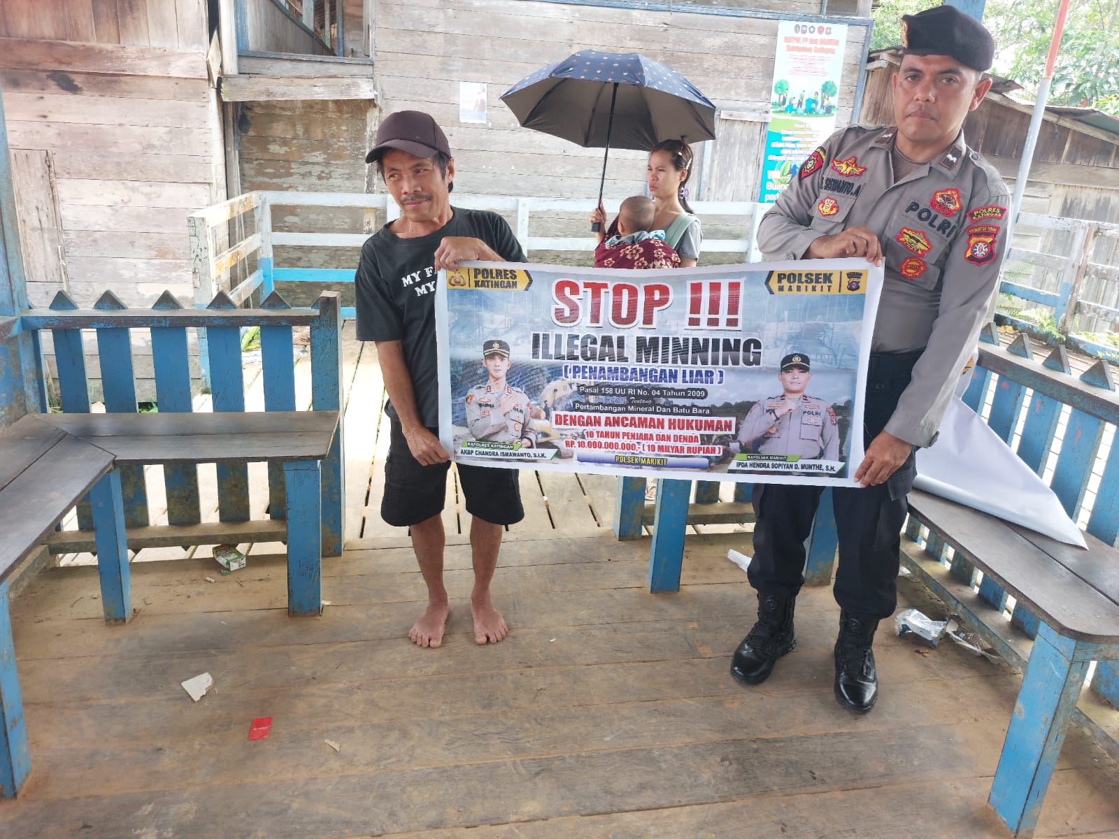 Kapolres Katingan AKBP CANDRA ISMAWANTO, S.I.K., melalui Kapolsek Marikit Ipda Hendra Sopiyan D. Munthe, S.H. Kegiatan Sosialisasi yang dilakukan Personel Marikit merupakan Upaya Pihak Polsek Marikit Untuk Mencegah tindak Pidana dibidang pertambangan tanpa izin/ ilegal mining sudah diatur dalam Undang-Undang Nomor 4 Tahun 2009 tentang Pertambangan Mineral dan Batubara. Ungkapnya.