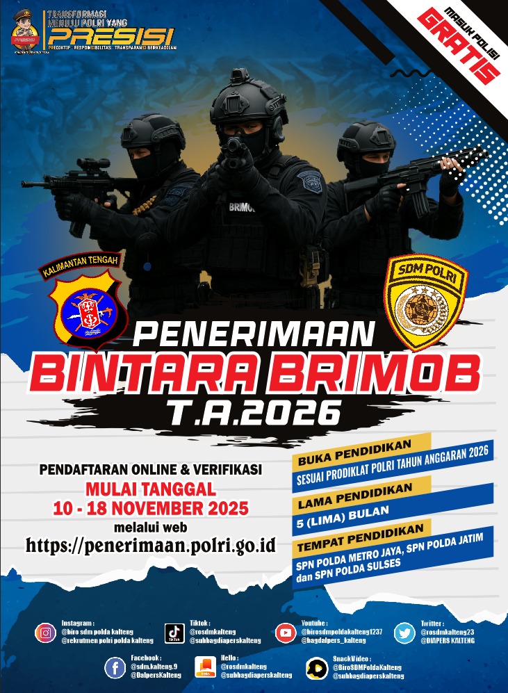 “Seluruh persyaratan bisa diperoleh pada situs resmi Polri atau bisa langsung mendatangi Polda Kalteng dan Polres jajaran terdekat,” ungkap Kabidhumas saat dikonfirmasi, Selasa (11/11/2025) pagi.
