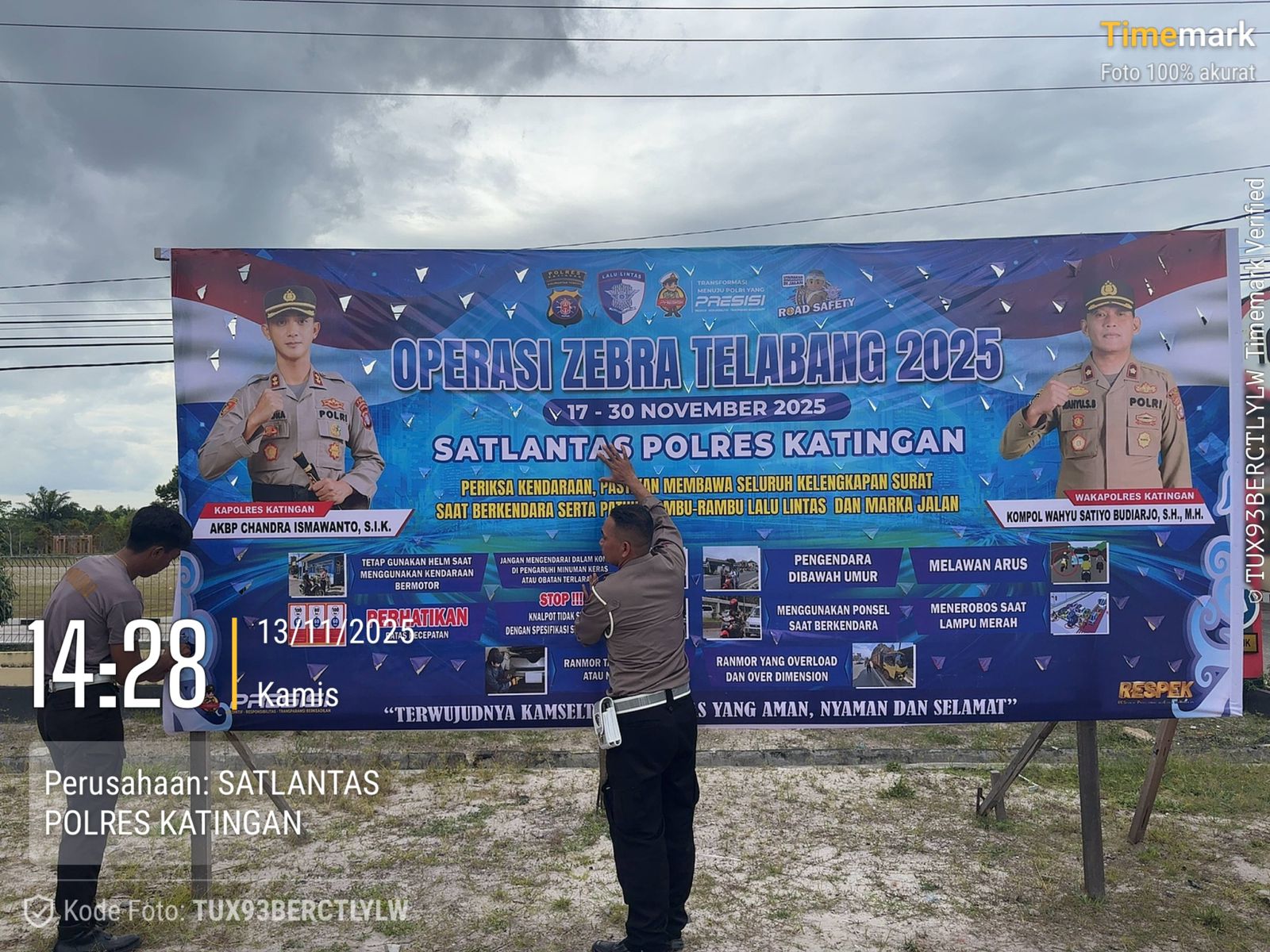 Semarak akan dilaksanakan nya Operasi Zebra Telabang 2024 yang akan dilaksanakan mulai 17 November 2025, Kasatlantas Polres Katingan Iptu Juwito S.E., M.M. berkomitmen untuk mensukseskan pelaksanaan Operasi Zebra Telabang 2025 dengan memasang spanduk imbauan sebagai sarana edukasi warga, Kamis (13/11/2025).