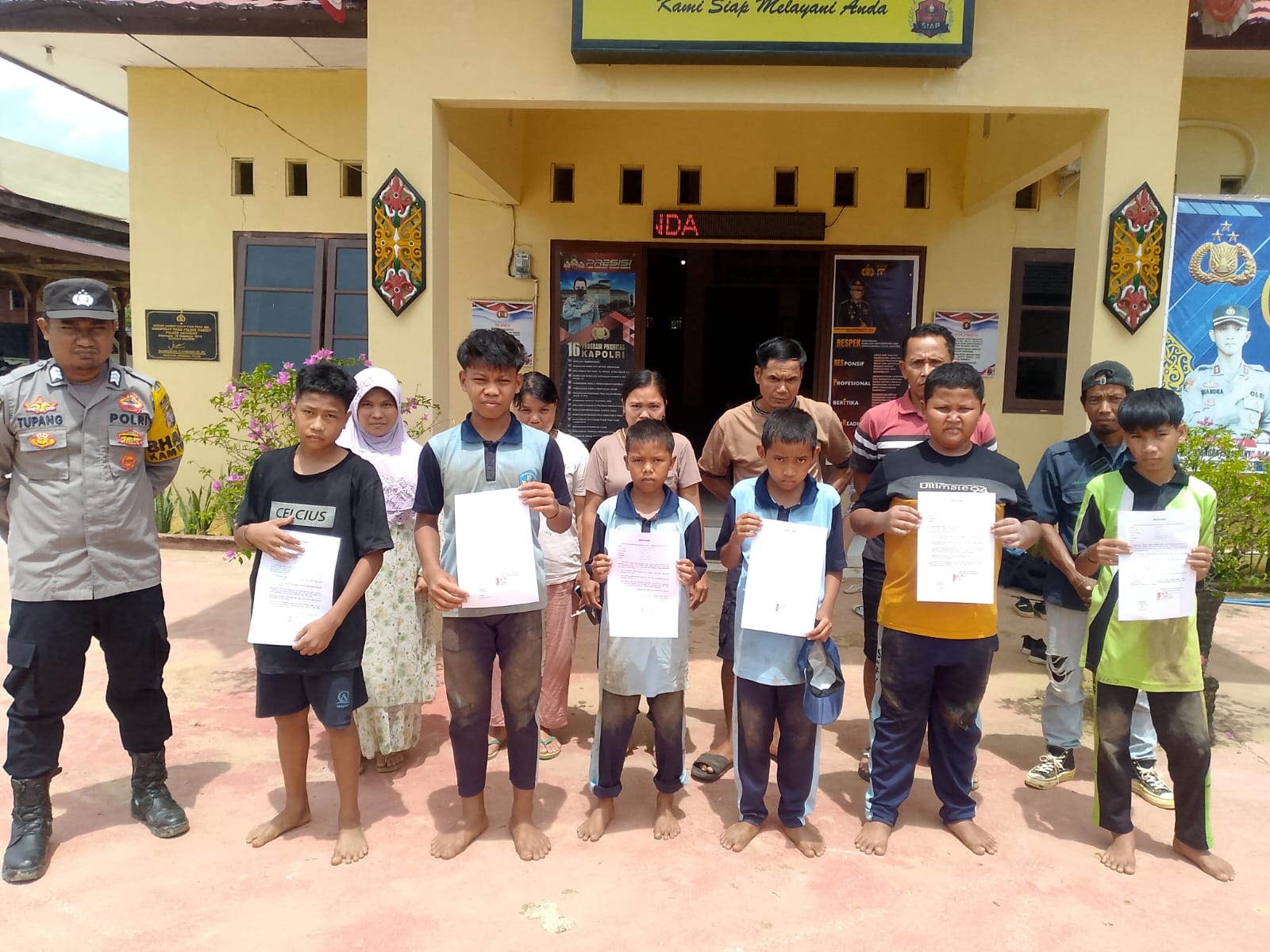 Dengan hasil mediasi di Polsek, para pelaku yang masih status pelajaran membuat surat pernyataan perjanjian untuk tidak mengulangi lagi dan di ketahui oleh orangtua serta materi.