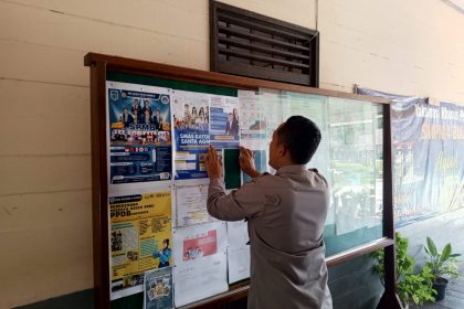 Nanga Bulik – Personel Bagian Sumber Daya Manusia (Bag SDM) Polres Lamandau melaksanakan kegiatan pemasangan pamflet sosialisasi Penerimaan Peserta Didik Baru (PPDB) SMA Kemala Taruna Bha...
