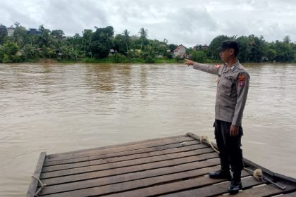 Polres Katingan- Mendeteksi potensi bencana banjir, Bhabinkamtibmas Desa Tumbang Kajamei Polsek Katingan Hulu dan Bukit Raya, Polres Katingan, Polda Kalteng Aipda Denny Ariadi melakukan pemantauan deb...