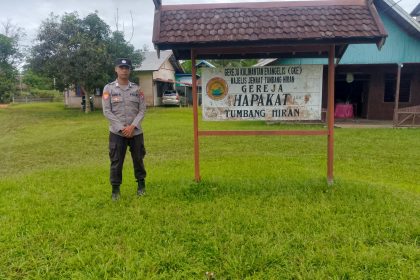 KATINGAN – Polsek Marikit – Jajaran Polres Katingan, Polda Kalimantan Tengah Kehadiran Personil Polsek Marikit saat Kegiatan Ibadah Minggu Umat Nasrani diwilayah, Kec. Marikit, Kab. Kating...