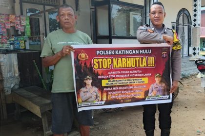 Tribaratanews.kalteng.polri.go.id-Polres Katingan – Salah satu cara Polsek Katingan Hulu, Polres Katingan, Polda Kalimantan Tengah dalam menangani Dampak KARHUTLA, Bhabinkamtias Brigpol Ulberto ...