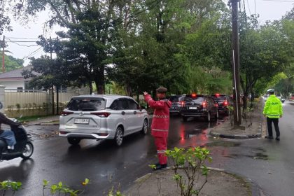 Palangka Raya – Meskipun hujan mengguyur Kota Cantik Palangka Raya, personel Direktorat Samapta Polda Kalimantan Tengah (Kalteng) tetap melaksanakan tugas pengaturan lalu lintas di sejumlah titi...