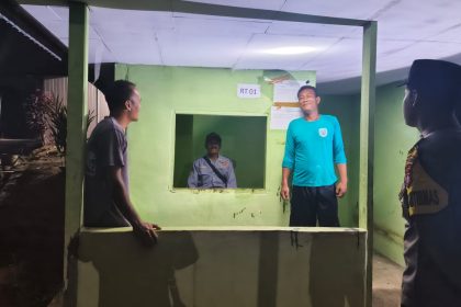 Polres lamandau – Bhabinkamtibmas Bripka Robert Riady Polsek Delang, Menyambangi Piket jaga sat kamling Kel. Kudangan. Kec. Delang Kab. Lamandau, Prov. Kalteng yang sedang jaga pos kampling, Min...
